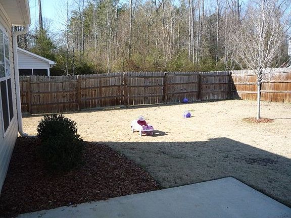 Well maintained home in neighborhood convenient to I-85.Nice open floorplan with kitchen overlooking large breakfast/dining area and GR.Hardwood floors in living areas, kitchen and tile in bathrooms.Kitchen has lots of cabinets,counter space and pantry.Sliding doors access GR to patio and fenced backyard.Master BR has vaulted ceiling, garden tub and walk-in closet. House also has security system.