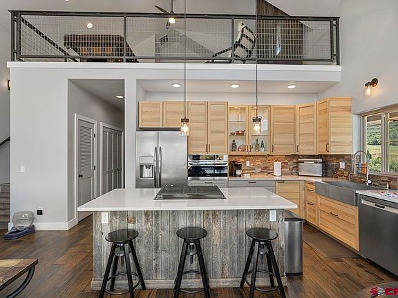 342 Top Ridge Place is a contemporary home with rustic accents. This is a 2 bedroom, 2 bath home with 1622 square feet of living space. It is a 1.5 story home with a loft bedroom and bath upstairs overlooking the living/dining area. Attached, oversized 2 car garage, wrap around deck with the west side all covered. Inside, there is wood grain-ceramic tile downstairs and carpeting upstairs. The home sits on 42 acres within a gated community. The property also has a gated driveway and about 3 acres fenced around the home site. Within the fenced area is a 40 x 42 metal barn with 3 horse stalls and 3 roll up doors tall enough to park an RV in the center bay. The north side of the home faces Pagosa Peak and the San Juan mountains with windows from bottom to top. There are also uninterrupted views of the San Juan mountains to the east. There is a pellet stove and an electric fireplace opposite from each other in the living area. French doors allow access to the covered patio and hot tub from the master suite as well as the front porch area. Recent upgrades include stacked stone backsplash and fireplace surround as well as an oversized single basin apron sink in the kitchen and central air conditioning. The property has a mix of juniper, grasslands, ponderosa pine and sagebrush as well as 2 ponds. Wolf Creek ski area is 1 hour away. The secluded setting offers a quiet escape from city life and there is also abundant wildlife on the property including elk, mule deer, turkeys and more. All furnishings, a 4 wheeler with snow plow, are negotiable with the sale. Also, buyers have the option to purchase this home with the adjoining unimproved 37 acre property to the west creating a 79 acre property.