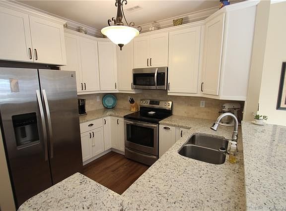 This townhome features a newly remodeled kitchen with new granite counter tops, new tile backsplash, & new stainless steel appliances. Huge Master Suite on the main level. The master suite features a large walk in closet, dual vanity sinks, & a garden tub. Vaulted Ceilings in the living room. New light fixtures and ceiling fans throughout. New carpet on the stairs and all of the 2nd floor. New roof on the building in 2018. Laundry hook ups downstairs and upstairs.