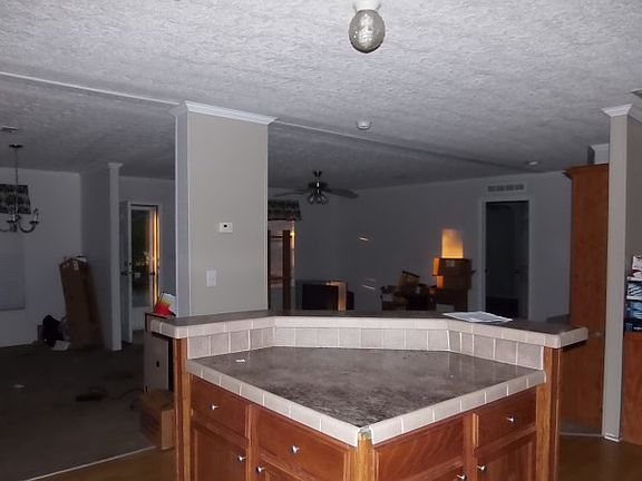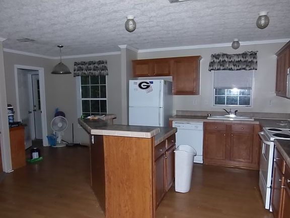 This 2006 manufactured home sits on over 1/3 acre lot (survey available), has water view of Juniper Lake across the street and is located just down the road from Juniper Lake park. Fenced back yard. Large living room with fireplace. Master bedroom and living room have water views. Large master bath with two closets, double vanities and garden tub. Spacious kitchen with lots of cabinets, island and breakfast nook. Also formal dining area.