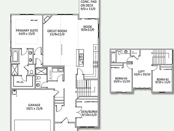PRIMARY SUITE is located ON THE MAIN LEVEL, 3 additional bedrooms, 3 Full bathrooms and a beautiful loft! The open kitchen features an oversized island with seating, beautiful quartz counter tops and full tile backsplash, large pantry, gas stainless steel appliances, farmhouse sink, plenty of cabinet space. The GREAT ROOM has VAULTED ceiling, tons of windows, and a gas fireplace. The laundry room is conveniently located on the main floor. Double doors lead to den/bedroom with closet which can be guest suite. Exterior photo is of a model home.