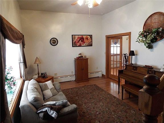 Lovely 2-story small town home. Comfortably blending modern conveniences with old-world charm, the home is over 100 years old but has had many recent updates in the past few years including roof, dishwasher, stove, microwave, hot water heater, water softener and foam insulation. Beautiful dining room with wood floors features french doors into the living room. Large family room in the back of the house is the perfect place to unwind after a full day. The detached 2-car garage has plenty of room for storage.