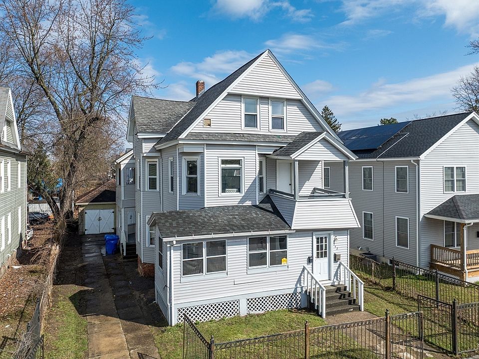 Welcome home to this amazing 2-family. The 2nd floor boasts 5 bedrooms, 2 baths. It has been completely renovated, new flooring, light fixtures and freshly painted. The kitchen has new cabinets and granite counter tops. The unit has a great size living room and dining room. This unit has 2 levels. The 1st floor has 2 bedrooms and is in great condition. The 1st floor is rented and the tenants will convey with the sale. The basement is clean, and has W/D hookups. Great for storage. The units have separate utilities. The home has a 2 car garage and a nice yard to hang out in the warm weather coming up. It is located close to stores, restaurants, schools and the park.
