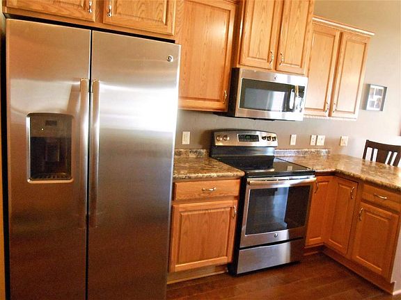 This is perfect! Heavenly main floor condo with only 1 owner! Upgraded from the start with high quality wood floors, carpeting, kitchen/bathroom counter tops, sinks and faucets! Custom Bali blinds! Added concrete pavers and stones to the landscaping! Entry on the ground floor with no steps on the main floor! 2 bedrooms, 2 full baths! Finished 2 car attached garage, gas fireplace, central air, open concept with cathedral ceilings. Carpeted stairs to the full basement with egress and stubbed for another bath! Take a walk on the walking trail or jump over to shopping area near by!
