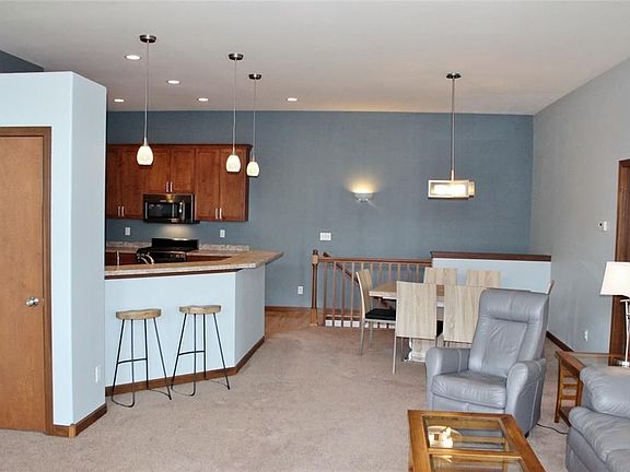 Terrific 3 bedroom, 3 bath end unit condo with zero entry to front door and garage entrance. Over 2351 sq ft of finished living area. The great room features 10 foot ceilings, fireplace flanked by windows & plant ledge over coat closet. The great room floor plan flows into the delightful 12' x 12' four seasons/den & kitchen for ease in entertaining. The kitchen features maple wood flooring, cabinets with dove tailed drawers & crown molding, breakfast bar with pendant lighting, pantry & stainless steel appliances. The LARGE vaulted master suite features a walk-in closet, private bath with double sink vanity, walk-in shower & tile flooring. The main bath features tile flooring & pocket doors to second bedroom. Main floor laundry with cabinets. The LARGE lower level family/rec room features 2 daylight windows, third bedroom with LARGE walk-in closet, third bath with tile flooring & storage with workbench. Energy rated windows, high efficiency furnace & A/C, 2 car garage, walking trails & ponds and close to shopping and Lowe Park. $250 association start-up fee & $100 association dues for lawn/snow care & insurance. Two pets weighing 110 pounds or less each are permitted.