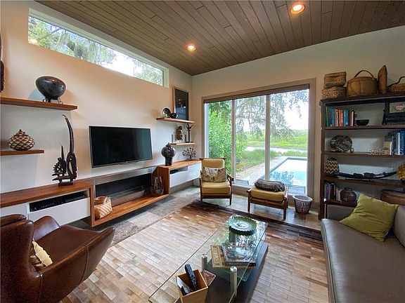 Tranquil waterfront estate on over 2.5 acres on Braden River. Custom built home was inspried by architecture Frank Lloyd Wright. This modern design property was built taking full advantage of every waterview and southern romantic treed canopy. A rare opportunity to own a custom built home on over 2 acres along with a guest house which is currently rented through April 2021. The guest quarters could also make a great in-law, home office or art studio. As you enter the main house, you will notice high ceilings, gorgeous travertine floors throughout and the breathtaking views of Braden River. The sleek modern kitchen has abundance of cabinets and storage with pull-outs galore! This kitchen is a chefs delight! Large surface quartz tops. Great space for prepping and entertaining. The wall oven and microwave are both convection ovens, induction cooktop and stainless vented hood. Spacious coffee bar area with back lit cabinets and under cabinet lighting. Recessed full size refrigerator. The built-in eating area features custom made wood table with Bench so you are enjoying your morning coffee with the water views . The transom windows allow the golden sunlight beam through the trees to light up your kitchen & living room. Enjoy the modern fireplace fueled by ehtanol on a cool winter night. The sliding doors stack away and bring the large outdoor screened patio in. Great for entertaining! The custom made wood accent wall adds to the nature landscape. You will enjoy all the birds, fish, manatee and dolphin that pass by. The master suite is the pinnacle of luxury living. You will love the walk in shower, double bowl vanity and water closet. The custom walk-in closet has plenty of storage with direct access to the laundry room. Off the master is the office/den which has some of the best views on the property! For the gardner, there are an abundance of water spickets, outside sink and cabinet for a lovely grill area with tiled patio by the pool. With a flip of the switch, the cover rolls back in minutes to enjoy your swim. Over in the guest house you will find another oversized screened in porch to enjoy the water views. The open floor plan of kitchen and livingroom offers plenty of storage and a breakfast bar. You will find tile floors throughout the guest house. The bedroom is en-suite and has a spacious walk-in closet and plenty of storage. The guest house has its landury in their own section of the garage. The owners section of garage is used for their tools & car when away. With the high celings in the garage, there is plenty of storage! The guest home being sold furnished /equipped as leases in place through April 2021. If you love the outdoors, this is a wonderful spot for boating, kayaking & gardening. Just minutes to the interstate and short drive to the sandy gulf beaches on Anna Maria Island. No HOA rules or regulations. Plenty of parking for your toys! The main house carport has spacious high ceilings for those who need taller height for their storage needs .The yard is gated and security cameras on property. Outdoor shed for additional storage stays with the property. Call today to schedule your video or private tour following CDC guidelines. Profesional photos will be uploaded soon.