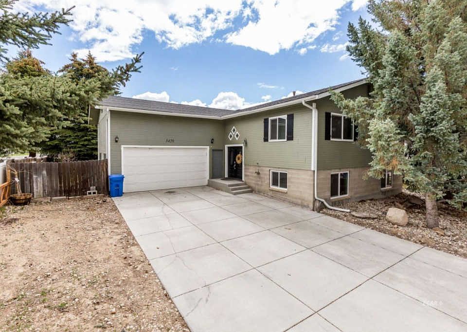 Spacious floor plan with lots of room for entertaining both inside and out. The kitchen has a huge breakfast bar and unique tiled countertops. Open living concept with slider out the dining area. Very large master bedroom that even has an area that could be a sitting area. Oversized laundry room with wash basin, shelving and new flooring. Updated half bath downstairs with new flooring. Big bedrooms and tons of storage throughout. Central air. Wet bar in family room downstairs but plumbing not hooked up. Large deck with pergola out back and property overlooks Mtn View Park. Backyard has sprinkler system and garden area with drip system. RV Parking. Garage is extra tall and has tons of storage and shelving. Refrigerator water line turned off. Mature trees. New windows installed Sept 2015. New front door and new driveway installed in 2017.