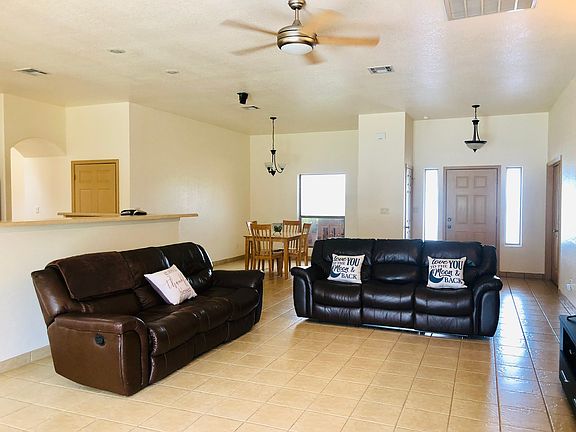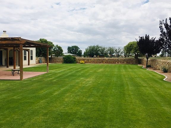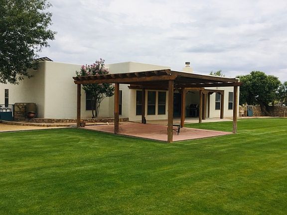 Beautiful Southwest Pueblo Style home built in 2002. 2452 sq. ft. on 1.85 acres with gorgeous backyard. Split-bedroom floor plan. 3 bedrooms, office, 2 and 1/2 baths. Master suite with 2 walk-in closets, split vanities, jet tub, and walk-in shower. Large, open living room with gas fireplace. Tile throughout the home except bedrooms, office, & closets. Refrigerated central air, central gas heating, 2 car garage, separate 1 car garage, and 7 kWh solar system. Covered patio with pergola. Fenced backyard with lush lawn & sprinkler system. Move in ready home on the outskirts of town.