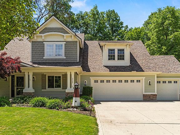 Craftsman style by Arbor Homes. This home is located on a secluded cul-de-sac of similar priced homes featuring a heavily wooded lot. This fenced yard backs up to the prestigious subdevelopment of Heron Preserve. This 2-story home with the primary bedroom on the main level features a large front porch and stunning landscaping all around. It has a 3-car garage and walk-way that leads to the wooded lot and oversized patio in the rear. A grand foyer with a high ceiling, office or den with glass doors can be converted to a formal dining room if desired. Open floor plan great for entertaining with custom Kitchen cabinets, solid surface countertops, title backsplash, working island, tile flooring, walk-in pantry, nook area with built-ins and window seat. Great Room features high ceiling, beautiful fireplace with sconces, and magnificent view of the backyard. The primary bedroom is tucked away, taking advantage of the view rear yard. The Bathroom suite features a walk-in closet, double vanity, garden tub, stand up shower. Three bedrooms up with one being oversized great for a second family living space. All kitchen appliances and washer/dryer remain. Newer mechanicals with Furnace, AC and Water Heater replaced in 2016, Roof replaced in 2021. Irrigation system on separate meter.