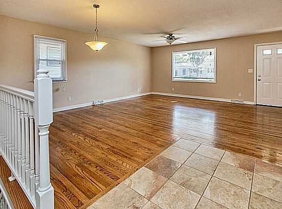 Completely updated home at an affordable price. This 4 bedroom ranch has gorgeous hardwood floors throughout main level. Open floor plan is perfect for entertaining friends and family. Large picturesque window in living room lets in tons of natural light. Dining area flows into updated kitchen with ceramic tile, new countertops, and stainless steel appliances. Lower level has been finished with additional bedroom, updated partial bath, laundry room, and large rec room with fireplace. Covered patio off garage gives you a place to sit back and watch the kid's burn off some energy. Fenced backyard has plenty of mature shade trees. Other updates include newer furnace, newer AC, newer plumbing & and newer electric. This home is move in ready and only needs your personal belongs to make it home sweet home!