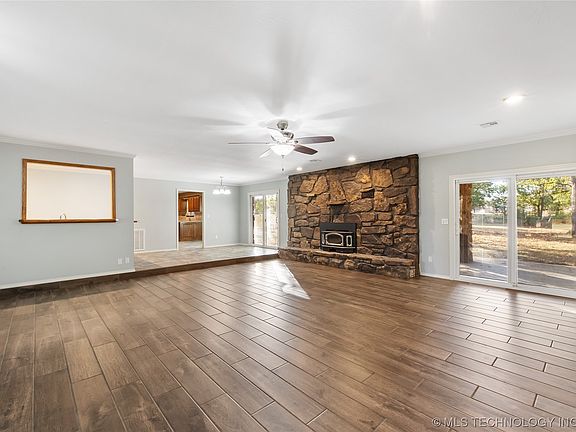 Country living on 4.62 acres. Located on the corner of Country Club and E 47th Street S. Updated and move in ready. Beautiful, stained kitchen cabinets with granite counter tops, tile backsplash and stainless-steel appliances. Spacious living room with built-ins, fireplace and new wood tile flooring. Office space off living room with built-ins (tons of storage) and wet bar. Large master suite with 2 closets. Updated master bath with jetted tub and separate shower. Newer vinyl windows, fresh paint throughout, 22 KW whole home Generac generator, storm cellar in garage, and 2 HVAC units. Brand new roof September 2022, 1 HVAC unit is brand new, 2nd HVAC unit and hot water heater installed 2015. Make this home your own and enjoy the quiet outdoors by the pond and mature pecan trees. Call today to schedule a private showing.