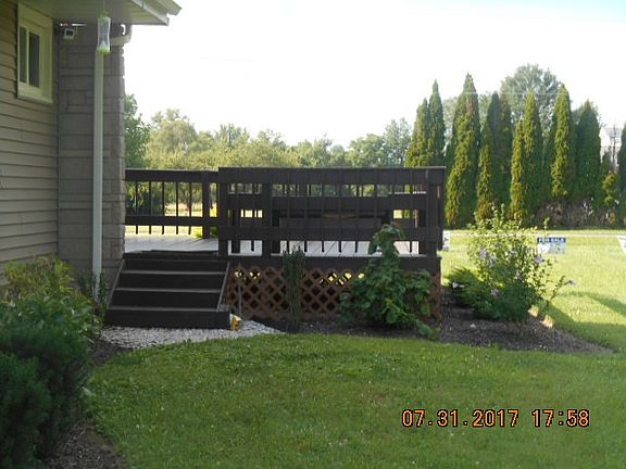 Very Nice One of a Kind property........ 3 bedroom 1.5 bath home on approx. 9 acres in the Mississinewa area. Approximately 5 acres are wooded, and has a shooting range set up. Property goes down to the river. Gravity Flow drain was installed in 2014 and the full basement is completely dry. 3 car garage, 20 x 30 pole barn, and 2 storage sheds, partially fenced back yard, and front deck. Whole home generator protects you for any electrical outages. This home has numerous updates including, blown in insulation, siding, roof, gutters, doors windows, well pump, programmable thermostat, ceiling fans, light fixtures, refinished hardwood floors, tile and both bathrooms in 2015. Chain link fence 2016. Nicely landscaped. Four apple trees and garden area.