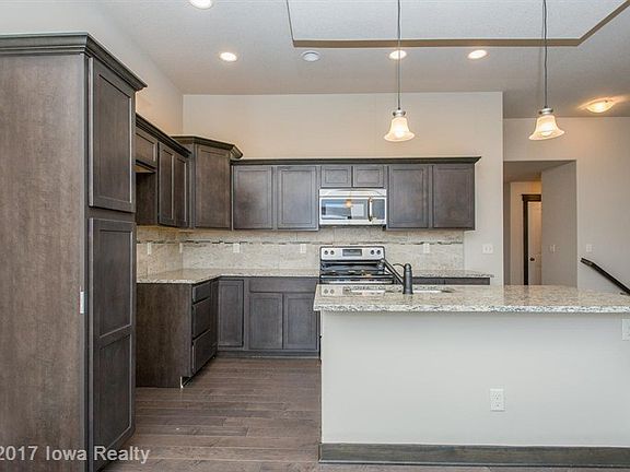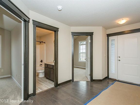 This is the Summit II plan by Homes by Fleetwood. There are 3 bedrooms and 2 baths on the main level, including a tile shower in the MBR. The main level has Hardwood in the entry, great room,, kitchen. and dinette. Tile floors are in all baths and the main level laundry room. Carpeted flooring is in all bedrooms and stairs to lower level. There are granite c-tops and SS appliances in the spacious kitchen that also has a "cloud" suspended form the ceiling and wired for rope lighting above island. The walkout lower level is plumbed for 3rd bath and ready to finish to your liking. Carlisle School District and 2016 DSM tax abatement are two more reasons to consider living in Sterling Trace. Tax abatement schedule is as follows. Year 1-3= 100", Year 4=75%, Year 5=50% and year 6=25%. If buyer uses the preferred lender the seller will pay $1950 in closing costs and the lender will waive the 1% origination fee.