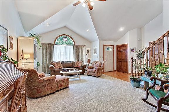 Well maintained 2 story 5 bedroom home.Spacious great room w/dramatic vaulted ceiling,& two way fireplace. Kitchen w/plenty of cabinets,island,sila stone counters,tile floor & dining area.1st floor master bedroom.Bath w/whirlpool.Second main floor bedroom could be an office.Upper level:3 bedrooms w/walk in closets & full bath.Yard:well landscaped, back yard fenced in w/patio off dining area.
