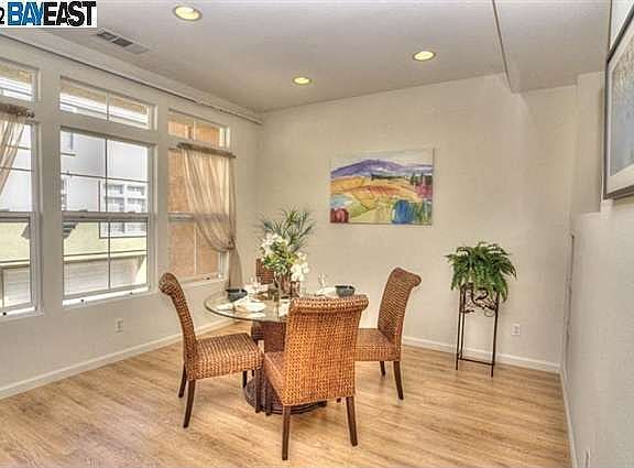 Shapell Townhome in the desieable Liberty Commons, inside unit, quiet and well maintained, new laminated floor, high ceiling, recessed light, central A/C, dual paned windows, alarm system, walk-in closet, attached 2-car garage w/generous storage, close to BART.
