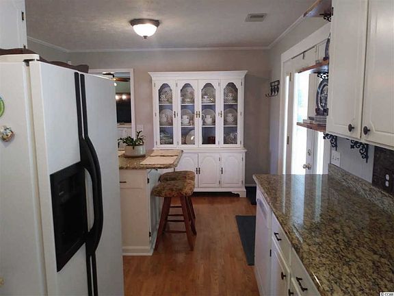 Want a piece of paradise? If you are looking for no HOA, room for your boat and RV, and still room to relax, look no further! This is a beautifully maintained large lot with public water and sewer, a double carport and patio area, detached storage building, front porch and so much more. The well kept, warm and inviting ranch style home has gas logs, granite countertops, lots of storage space, and freshly painted kitchen and walls. The master bedroom has room for a seating space and has a walk in closet. The huge master bath has a seated whirlpool tub for unwinding at the end of a long day. Located between 2 state of the art healthcare facilities, many churches, grocery stores and only 15 minutes from the Grand Strand where your options are unlimited, this property has so much to offer at such a great price! All measurements are estimates and should be verified.