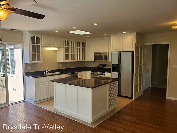 Flex-Space, Money-Saving Living in the Heart of San Ramon FOR RENT - Roomy single level 4 bedroom, 3 bath home in the heart of San Ramon. Soaring ceilings and carpet in the living room. Light and bright remodeled kitchen features tile, granite countertops, white cabinets and a dining area. Stainless-steel appliances include refrigerator, dishwasher, gas range & microwave. Adjacent sunny family room with hardwood floors leads out to the patio and yard with an abundance of fruit trees. Spacious Main suite with dual closets has updated en suite. Two other bedrooms have great light and roomy closets. Self-contained guest suite has wood floors and offers kitchenette and laundry, living and sleeping area- great room style. Access to private courtyard. Perfect for au-pair or guest* *2 car garage. W&D (hookups) and tankless water heater in garage * SOLAR HOUSE...so very low electric bill. Pets allowed on approval. Extra Deposit. Gardener included. One year lease to start. NO SMOKING OF ANY KIND. Renter's insurance required. 3xIncome to qualify. Online application. Must follow COVID guidelines for showing-sign PEAD digitally in advance. Email fastest response. (RLNE4406133)