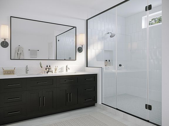 • Bathtub/Shower Combination, Ceiling Fan(s), Double Vanity, Entrance Foyer, High Ceilings, Kitchen/Dining Room Combination, Pantry, Quartz Counters, Shower Only, Smooth Ceilings, Walk-In Closet(s), Walk-In Shower, Water Closet