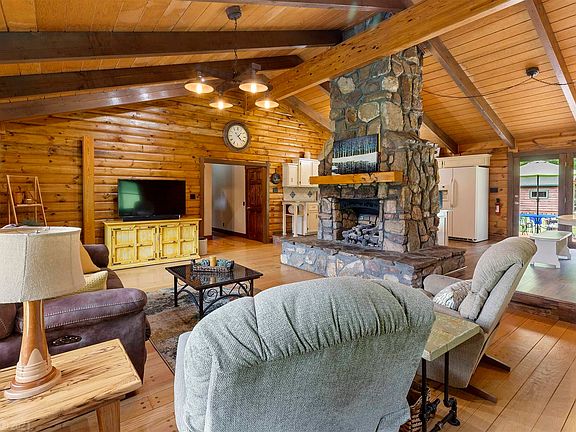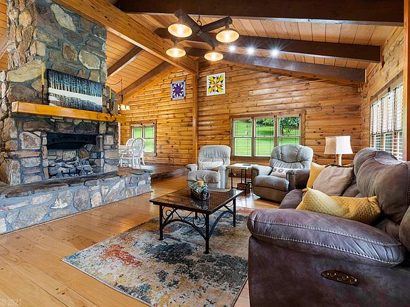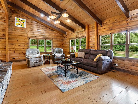 Welcome to the absolute best of both worlds. Come see this immaculate log home that gives you the feel and privacy of being in the country yet only minutes from downtown. The condition of the home will impress you plus the grand entrance of vaulted ceilings, wood beams and gleaming hardwood floors plus the large stone fireplace that is the anchor for the main living spaces. The kitchen has been fully remodeled with custom cabinetry plus you'll notice a coffee bar and cabinet on the back side of the stone fireplace which would also be great for entertaining. The bedrooms all have hardwood floors and lots of windows for natural light throughout. The unfinished basement is split between the workshop / laundry and garage. The outdoor spaces offer you a nice sized front porch and outback you have a large deck and brick paver patio to enjoy a view of lots of trees and peacefulness. Nice storage shed for mowers and covered boat parking as well.