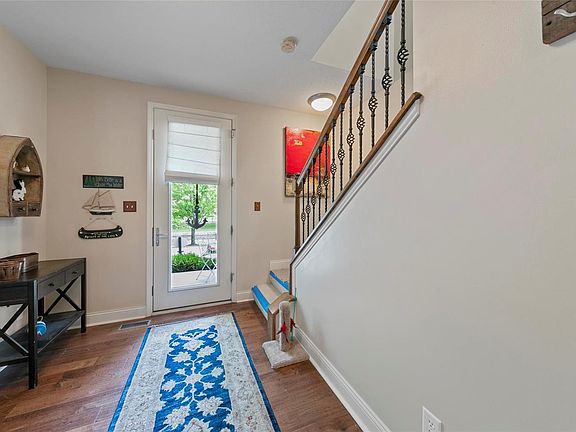 Welcome to this charming waterfront New Town home overlooking a beautiful canal and tree lined street. Double front porches lead you inside a wonderfully open floorplan with gleaming hardwood floors throughout the main level. Natural light streams through the glass doors into the spacious living room, which leads you to a large dining area with fireplace and custom built-ins. The updated kitchen boasts tall white cabinets, granite counters, stainless appliances (all stay) and a great walk-in pantry! The massive mudroom offers a wall of custom cubbies and leads you to an attached 3-car garage! Upstairs, you'll find a huge loft with bonus office space, 2 bedrooms linked by a jack-n-jill bath, and a spacious master suite which walks out to a screened-in deck that overlooks the canal. The LL is partially finished and offers plenty of space to entertain, plus a 3/4 bath and egress window! The cute back patio offers a tranquil and private oasis complete with a fountain and built-in grill!
