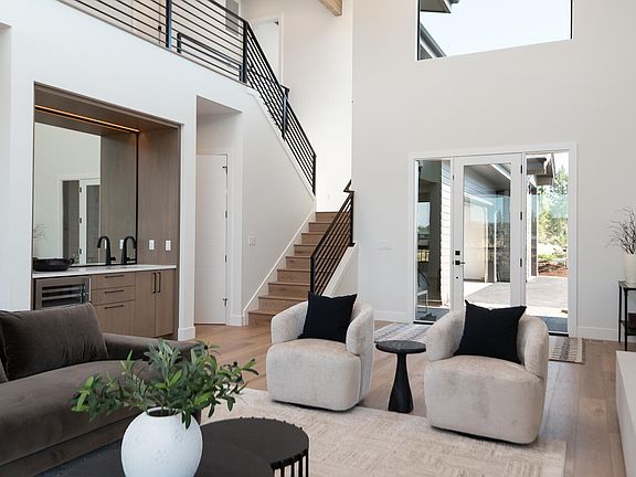 Experience timeless design and modern luxury in this stunning Mid-Century Modern home by Structure Development NW in Discovery West. Clean lines, expansive windows, and warm wood accents create a seamless blend of style and function. Open floor plan features a sleek gourmet kitchen, dining area, wet bar, and great room ideal for entertaining. Main-level primary suite is a private retreat with a spa-like bathroom, tile shower, soaking tub, and walk-in closet. Mud room, office, and laundry also on the main level. Upstairs includes an ensuite guest bedroom, additional bedroom, full bathroom and a versatile bonus room that could be used as a fourth bedroom. Enjoy indoor-outdoor living with a covered patio, landscaped yard, and views of Mt. Bachelor, backing to Discovery Park open space. Oversized 3-car garage includes Sprinter bay. Located in one of Bend's most desirable neighborhoods with trails, parks, and dining nearby—this home is the perfect fusion of elegance and convenience.