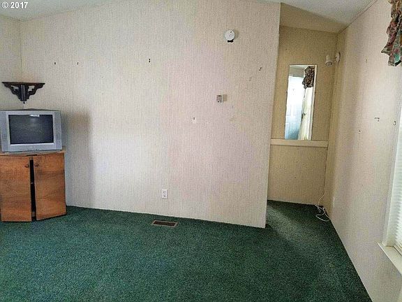 Clean 2 bedroom 1 bath with vaulted ceilings, vinyl window, sun porch and storage shed. Very clean 55+ senior park. Low space rent. Home is vacant. Includes washer and dryer.