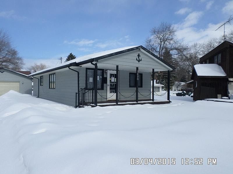 Two bedroom one bath home in the village of Port Austin. It features a 2 car garage, roofed porch and roofed patio. Property is being sold