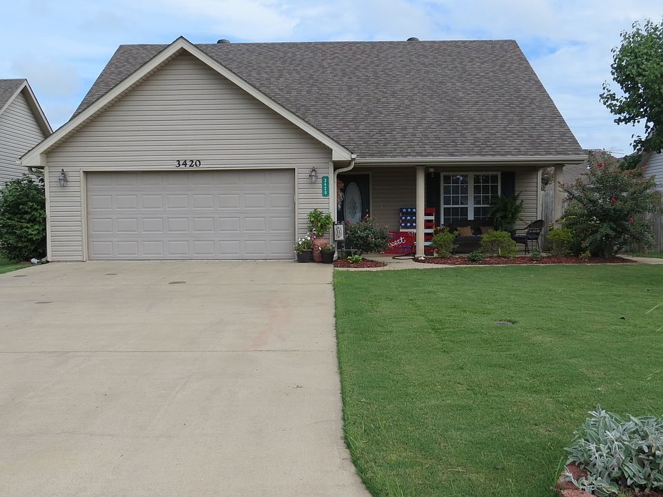 Great family Home. Beautiful, spacious, GREAT open floor plan with 4 bedrooms and 2 baths. Beautiful new hickory flooring throughout the large living room and hallways. New warm paint throughout. Large master suite with jacuzzi tub and separate shower. Walk in closet off of the master bath. All other bedrooms have large closets. Kitchen has ample cabinets and counter top space, pantry, and 12 foot barreled ceilings. Outdoor seating area off of the living room with beautifully redone flower beds and an outdoor ceiling fan. Completely privacy fenced backyard, with play set (to stay). 2 car garage with TONS of attic space. Recessed lighting in the front porch. Quiet neighborhood conveniently located close to town. Call for any questions and showings- Garrett 870-260-5770. READY TO MOVE IN