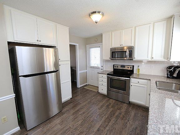 A lot of bang for your buck with this fabulously updated home in desirable Neuse Crossing. Recently renovated kitchen sparkles with stainless steel appliances, granite counters and white cabinets. The downstairs features a contemporary open floor plan. Brand new deck in 2020. Fresh paint & new roof in 2017, new HVAC and water heater in 2016. Backyard features extra high fence for privacy. The popular 33-mile Neuse River Greenway is just around the corner at Horseshoe Farm Rd. Easy access to I-540 and RTP.