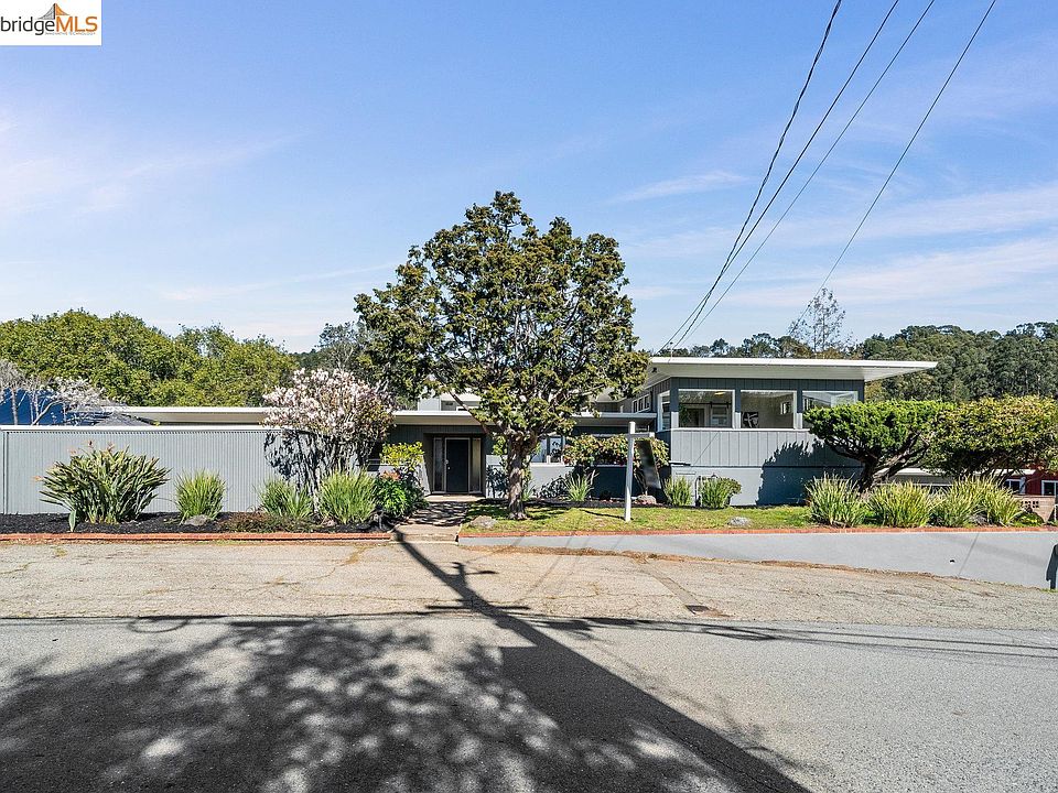 SPECTACULAR! A VERY FINE HOME OF DISTINCTION WITH SO MUCH TO OFFER!! Popular mid century offers all level living in primary areas with split level additional bedrooms and extra rooms! LEVEL IN ENTRY into stunning living-dining room with tall vaulted wood ceiling, gas burning fireplace, and a wall of glass leading to back patio. IMPRESSIVE! Enter ito the left side of the home with the primary suite, brand new full bath and dressing area. Sliding doors open to a private patio. There are 2 more bedrooms and bath. THE KITCHEN! WOW! Plenty of cabinet and counter space. VERY HANDSOME! Enjoy modern upgrades that compliment the look. The split level goes to the second primary suite with full bath and sitting area. THE SUNSET ROOM! Perfect for media/rec room and boasts a view of the BAY! WATCH SUNSETS FROM HERE. Down the stairs is a guest bedroom/office that opens out to the side yard with an in ground SWIMMING POOL! A huge multi purpose room offers so many possibilities. There a laundry room and direct access from attached 2 car garage.(level in from driveway entrance) The home is heated with a brand new boiler system - TAKE OFF YOUR SHOES AND ENJOY THE TOASTY FLOORS! Located in the popular Joaquin Miller neighborhood! Such a wonderful place to call HOME!!