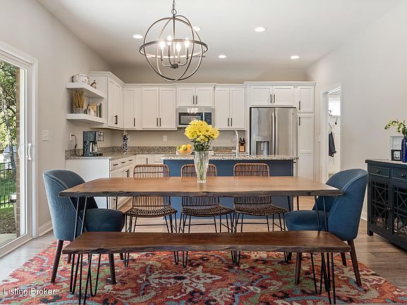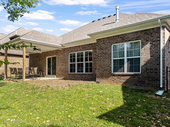 You will love this like new ranch located in Jeffersontown, Kentucky! This 3-bedroom, 2-bathroom home has a 2-car attached garage--featuring an open concept floor plan with 9' ceilings. This home is only 2 years young with neutral paint colors and is ready for you to move in. As you enter the foyer you can't miss the gorgeous luxury vinyl plank floor. Just off the foyer you will see the spacious Great Room with vaulted ceilings and a gas fireplace. The open concept allows you to see the dining area and kitchen with ample windows for lots of natural light. The modern kitchen features a navy-colored large island, beautiful white cabinetry, stylish open shelving, granite countertops, and stainless-steel appliances with an induction stove! The patio door leads to a covered patio; Perfect for grilling and entertaining with family or friends. The backyard is fully fenced with attractive aluminum fencing, great for children & pets safe play. The nearby laundry/ mudroom has built in bench seat with hooks for organization when you enter through the garage. The primary bedroom has tray ceilings, large walk-in closet, neutral paint colors, and loads of natural daylight. The en-suite primary bathroom has double sink bowl vanity, walk in shower with floor to ceiling tile, and glass shower door. The home's other two bedrooms and additional full bathroom are found just down the hall. Don't delay in looking at this like new home in Stony Farms!