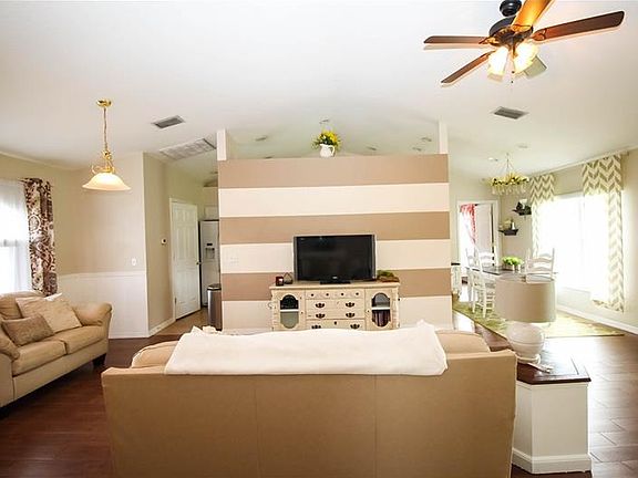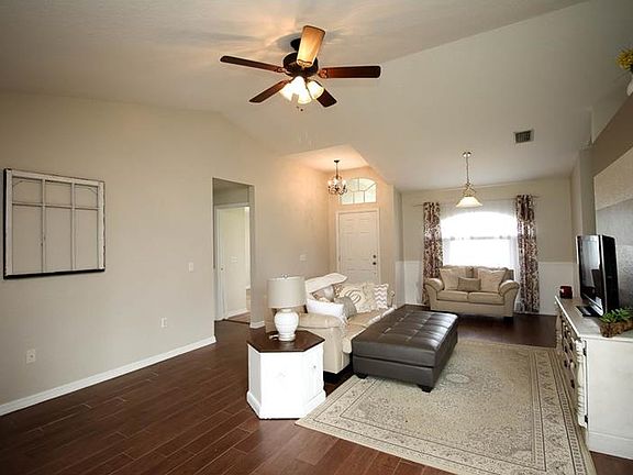 ONE LOOK WILL DO... first impression of well maintained over sized corner lot. Conveniently located close to shopping, ball field, schools and restaurants. COMPANY COMING? Dine in style in formal dining room that with open floor plan. Newly installed wood tiled floors and freshly painted walls. CENTRAL GREAT ROOM has vaulted ceilings and sliding glass doors that open to lanai area. AT YOUR SERVICE! Style and speed for the homeowner who does more than cook all day. Come home to prepare meals quickly and efficiently in this functionally designed kitchen, all appliances included, plenty of cabinet and counter space. MASTER SWEET, situated for privacy with split bedroom plan, separate walk in closet, double sinks, garden tub and separate shower. DON'T SWEAT IT! Inside laundry room with closet pantry. Who cares if it drizzles? Move picnic under cover of this large screened lanai. HAVE A GREEN THUMB? Look at this large corner fenced yard, plenty of room to plant a garden. OR an afternoon game of volleyball.