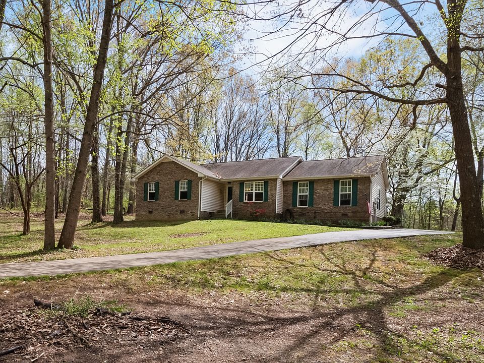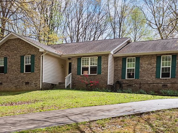 Check out this rare find of one level living on 5.6 acres with no HOA and located just 2 miles off exit 11/I-24 on Trough Springs Road. This 3 bed, 2 bath home is nestled down a long driveway on a tree lined yard. New flooring has just been installed and fresh paint has been applied to many rooms as well as on the large back deck! The living room is accented with a soaring ceiling and cozy fireplace and is open to the eat-in kitchen area as well as the formal dining. All kitchen appliances, the washer and dryer convey with the home and are less than 3 years old. Primary bedroom has ensuite with soaker tub & separate shower plus French doors that open onto the deck. Plenty of room for all with two more bedrooms and a huge rec room/den! Enjoy fresh apples and peaches from the 3 trees in the yard. There is also an animal pen and storage shed that will remain.