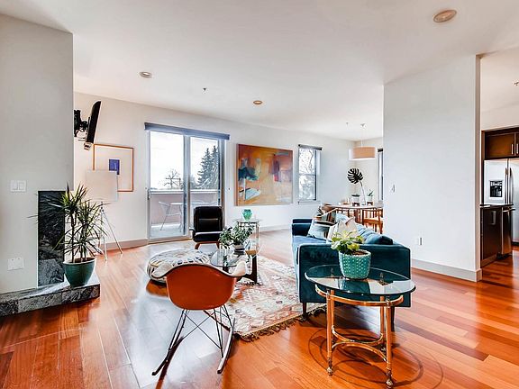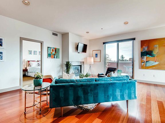 Stunning and spacious 2 bedroom and 2 full bath condo in the heart of Highlands Square! Very rare find in Highlands with 1484 square feet all on the same level. A perfect mix of entertaining spaces and comfort in this immaculate third floor unit with spectacular views and tons of eastern and southern exposure. High ceilings, open floor plan, and chef's kitchen! Spacious dining area and bar are perfect entertaining areas. Very large master with ensuite bathroom and enormous walk-in closet. Second, larger private bedroom and bath. Custom shelving and desk area are perfect home office. Take in the views and stars with private terrace off of living room or luxuriate in front of the cozy, fireplace! Less than a block walk to some of the best shops, restaurants and bars in Denver. Mere minutes to Sloan's Lake, Tennyson Shopping district and very easy access to downtown, LoHi and Bronco's Stadium. Two oversized, reserved parking spaces in enormous, private, heated underground garage.