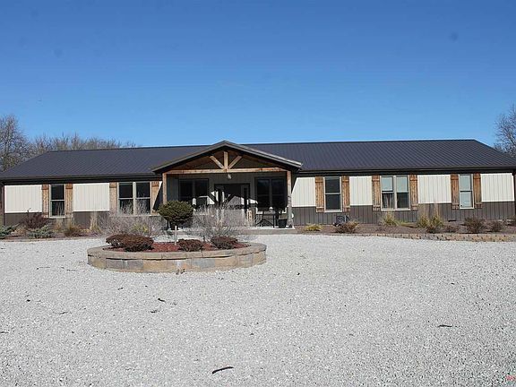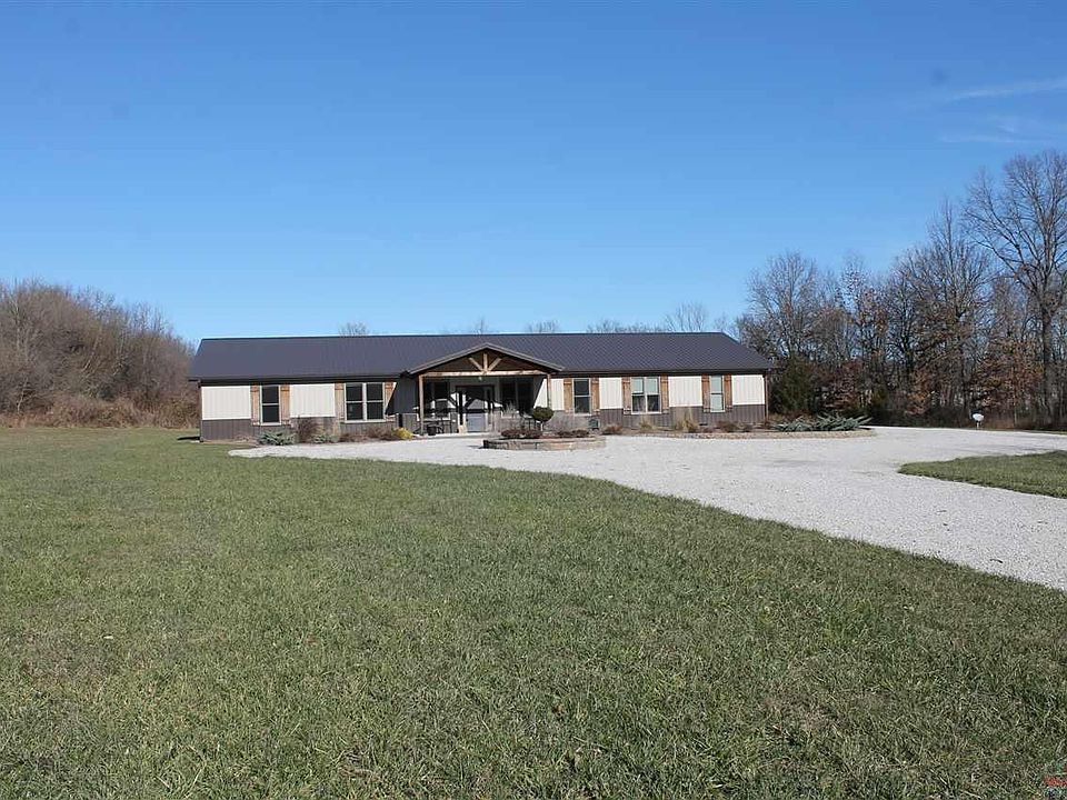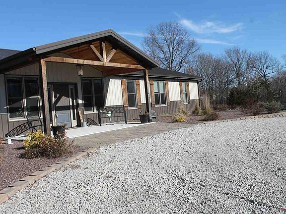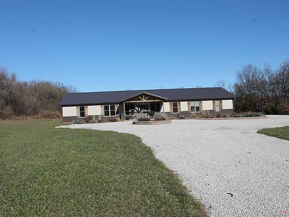 City living with country feel! 4 bedroom, 2 bath metal shouse with nice square footage & open feel. Living room, dining room, and kitchen have open floor plan with scraped hardwood floors. Kitchen features granite counter tops, ample space, custom built cabinets, & soft close drawers. Master suite has patio access, large closets, & spa-like master bath with large walk-in shower & double vanity. Bonus room could be used as office or 5th bedroom. Mudroom with built-in shelves! Endless hot water supply & reverse osmosis water system. 3-car attached garage with oversized bays. Covered front porch with rustic beams gives nice place for frequent wildlife views. Sits on 6.6 acres offering privacy, large lawn space, & circle drive. Located in Skyline School District and borders Katy Trail.