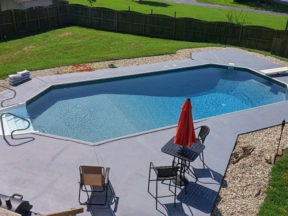 Wow! This home has the Wow factor! Wide open floor plan! Large beautiful kitchen with stainless steel appliances including refrigerator. Beautiful stained counter tops, tile backsplash and hand scraped hardwood floors. Laundry room and half bath are just off the kitchen and very convenient from the pool area. Large open living area has a beautiful stone fireplace with pellet stove insert. Master suite with huge walkin closet and a 2nd closet, also double sink vanity and walkin shower. The 2nd & 3rd bedroom with large hall bath are also on the main level. The upstairs hosts a private suite including a 2nd living area, 3rd full bath two large closets, and large 4th bedroom with a wall of lovely shelving. Two wood decks overlook the sparkling inground pool with diving board.All on 1/2 acre!