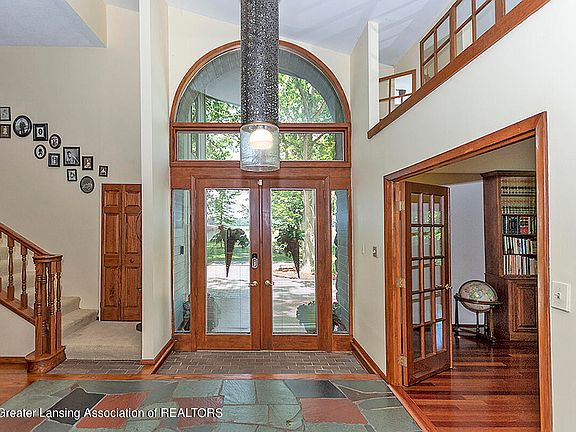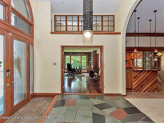 Exceptional living in this quality 3,012 sq ft, 4 bedroom, 2.5 bath contemporary with custom gourmet kitchen and attached 8+ car finished, in-floor heated garage. The soaring 2 story foyer opens to a warm great room stone fireplace, paneled accent walls, cathedral ceiling and a custom crafted Amish kitchen with center island, wet bar peninsula-command center, Gaggenau range with grill, built in steamer, trash compactor and endless storage and convenience. The formal dining room has a convenient passthrough to the kitchen and built-in cabinets. Through the great room lies a magnificent sunroom with wood paneled walls, cathedral ceiling, floor to ceiling windows and cozy in floor heating with access to a covered deck for expanded outdoor living.