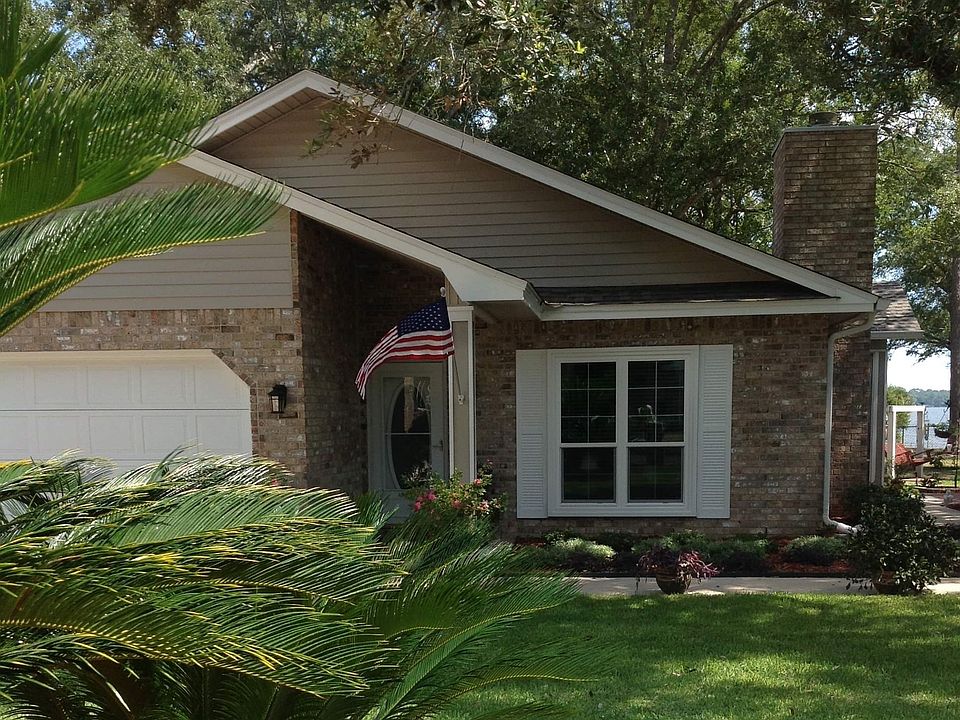 This lovely all brick three bedroom, two+ bath home is located in highly desirable Perdido Bay Oaks subdivision, located on beautiful Perdido Bay. Every room in the house has a view of the bay, and you can enjoy the sounds of the surf and nature as well as incredible views of the bay from the newly added 13'x12' screened room, which faces south. Sunrises and sunsets are especially beautiful viewed from the comfortable screened room. Hardwood flooring was installed in all three bedrooms last year. All other floors are tile. All windows were replaced in 2018 with PGT Solar Ban Low-E high impact rated energy efficient windows. The kitchen has all new cabinets with quartz counter tops, and new stainless steel appliances. A butler's pantry with the same cabinets and counter tops was added. The home has a well sprinkler system, central vacuum system, fireplace with gas logs, upgraded ceiling fans and lighting. Purchase of this property comes with deeded access to Perdido Bay, pier and gazebo. Give us a call to schedule a time to see this lovely home. 251-348-0554.