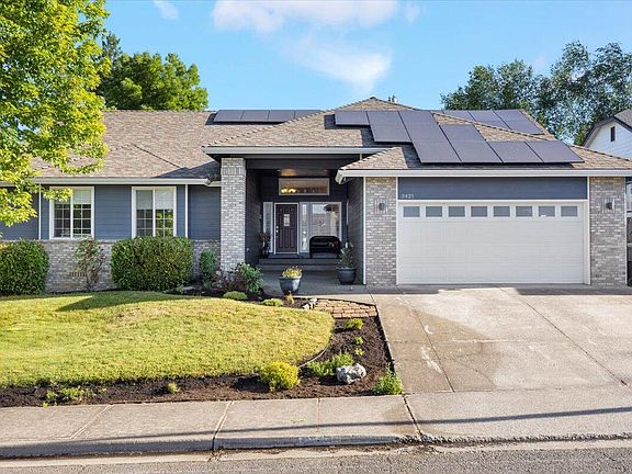 Experience modern living in this Beautiful, single-story, 4 Bedroom, 2 Bath home completely renovated in 2016! Featuring granite countertops, large kitchen island, pantry, laminate plank flooring and stainless appliances, every detail has been thoughtfully updated, including lighting and plumbing fixtures, Interior and Exterior Paint. $100,000 in upgrades! Enjoy spacious rooms, Primary Bedroom with ensuite bathroom & walk-in closet, cozy Family Room and an open, welcoming Living Room & Dining Room. The expansive front walkway and porch offer peek-a-boo views of the valley, adding to the charm of this lovely home. The private backyard boasts a garden and covered patio, perfect for relaxation or entertaining. Plus, New Roof in 2016 with Solar Panels installed in 2020, you'll pay only a small monthly service fee for power! Located in the desirable East Medford neighborhood with top-rated schools, Lone Pine Elementary, Hedrick and North Medford High School. This home is a must-see!