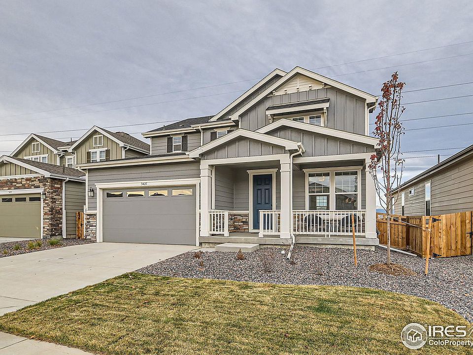 ASSUMABLE MORTGAGE 6.125%. Built in 2024, this ALMOST-NEW home is situated on a premium lot with breathtaking mountain views, oversized garage and features a thoughtfully designed layout perfect for modern living. Upon entering, you'll be welcomed into a spacious living room that flows seamlessly into a dedicated dining area.The kitchen is a chef's dream, boasting a large island, ample counter and cabinet space, and stainless steel appliances, including a new refrigerator. It's perfect for entertaining, as it opens to the cozy family room complete with a fireplace and a beautiful mantel.Upstairs, you'll find two generously sized bedrooms, a versatile loft space ideal for an office or playroom, and a luxurious primary bedroom with more of those stunning mountain views. The primary bathroom has been upgraded for added comfort and style.This home is loaded with additional upgrades, including 9-foot ceilings, ceiling fans throughout, blinds on every window, a fenced-in yard, and a new washer and dryer. The beautifully landscaped front yard adds to its curb appeal.With an unfinished basement offering endless possibilities, this home is ready for your personal touch.Located in a prime spot with easy access to I-25, Denver, Boulder, shopping, and dining, this home is a rare find. Don't miss your chance to make it yours!