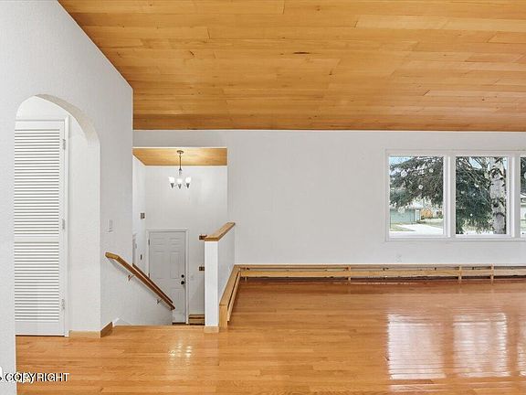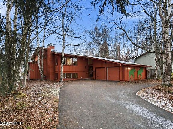 Spacious four-bedroom College Village home offering over 2,700 sq ft of flexible living space. Features include hardwood floors, two fireplaces, a bright sunroom, and a cozy library with built-ins. The finished basement adds a large family room, laundry, and extra storage. Outside, enjoy fenced yard space with raised garden beds, a chicken coop, and extensive decking, perfect for outdoor living.Convenient midtown location near schools, trails, and UAA with a heated two-car garage and circular driveway.