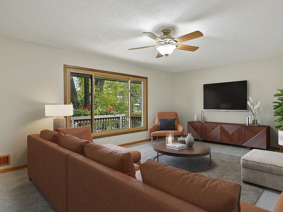 Beautiful 2 bed, 2 bath rambler. Open main floor layout. Kitchen has lots a storage, center island and plenty of counter space. Room off of kitchen can function as office or dining area. Kitchen walks out to backyard, gazebo and patio area, great for entertaining. Large living room has huge window and great view of deck and greenery. Spacious main bedroom. Finished lower-level has gorgeous fireplace, upgraded bathroom with walk-in shower and extra storage. Easy access to hwy 100, 694, 55, 394 and 94.