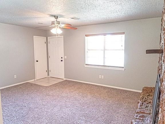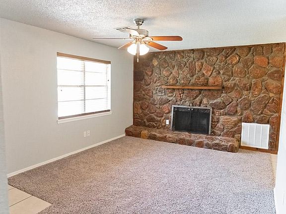 Perfect starter home. Fresh paint inside and out, new carpet, tile, light fixtures replaced, ceiling fans in all bedrooms,kitchen was gutted and all new cabinetry and countertops installed plus extra storage cabinets installed in dining area. Newer HWT and HVAC system. Home has a pretty stone fireplace. Steel exterior doors. Large fenced open patio that's perfect for entertaining. Large shade trees in the back yard. The back yard is fully fenced. Yard is large enough for a big outbuilding. Faux wood blinds throughout the home. Newer GDO. Best looking home in the neighborhood!!!