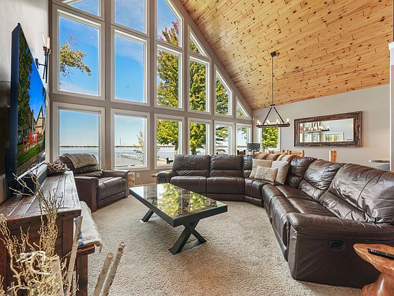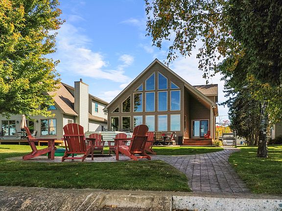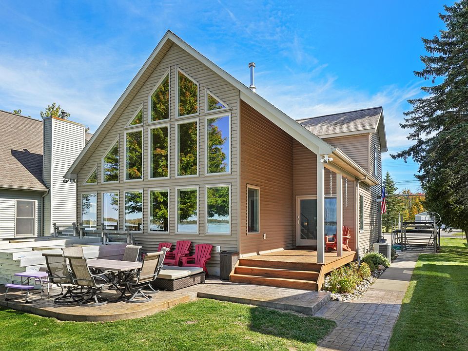 This spectacular lakefront home is located on Houghton Lake's (Michigan's largest inland lake) prestigious Long Point Dr. Situated in the bay perfectly where the waters are calmer and the SUNSETS ARE CAPTIVATING. From the outside you will appreciate the stamped concrete patios in the front and the back a must for outdoor lake living. Large firepit area room for all your friends and family to gather and tell stories. Inside the open floor plan features T&G vaulted cathedral ceilings and a wall of windows to admire the view. Kitchen features beautiful maple cabinetry with lots of counterspace. Main floor master with EnSuite and walk-in closet. Upstairs is a vaulted loft perfect for office or family game night. Two additional bedrooms and large bathroom. You will not be disappointed.