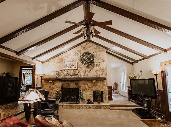 Custom Ranch with huge finished basement on wooded 1.4 Ac. Lot circle drive, 2 Car Garage. Covered porch opens to foyer with stone flooring. Family room with stone fireplace, vaulted ceiling, ceiling fan, great views from screened porch and deck. Large kitchen and bkfast room, lots of cabinets, pantry, recessed lites, tile backsplash, tile floor. Dining room w/custom molding, private Deck.Large Master Bedroom with ceiling fan.Master bath with garden tub, separate shower, dual vanities.Lower level w/office, recreation room, den, bonus room 1/2 bath, storage and workshop. Rec room with fireplace, pool table, entertainment/bar, refrigerator, & sink.Den with masonry fireplace. Office has tray ceiling, ceiling fan, recessed lighting. Flexible Bonus room. Over 900 sf of storage & workshop with exterior door. 2 water heaters. Home Warranty. There is also community center and pool homeowners can join. Home priced to sell giving future buyer more flexibility to make updates as desired!