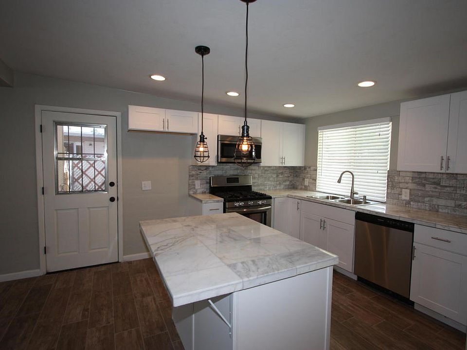 Beautiful 3 bed 2 bath home in Southeast Tucson! features tile flooring, chic back splash, stainless steel kitchen appliances, dual pane windows, 2 tone interior paint, exterior paint, smooth surface counter tops, cabinets, modern electrical and plumbing fixtures and contemporary tile shower surrounds. Truly a must see!**Agent owned**