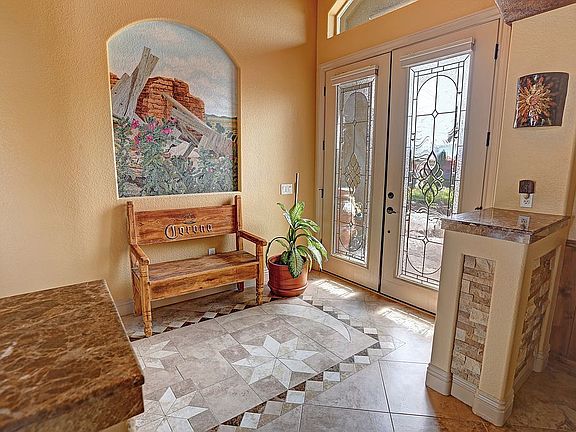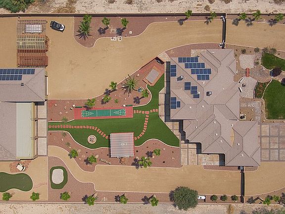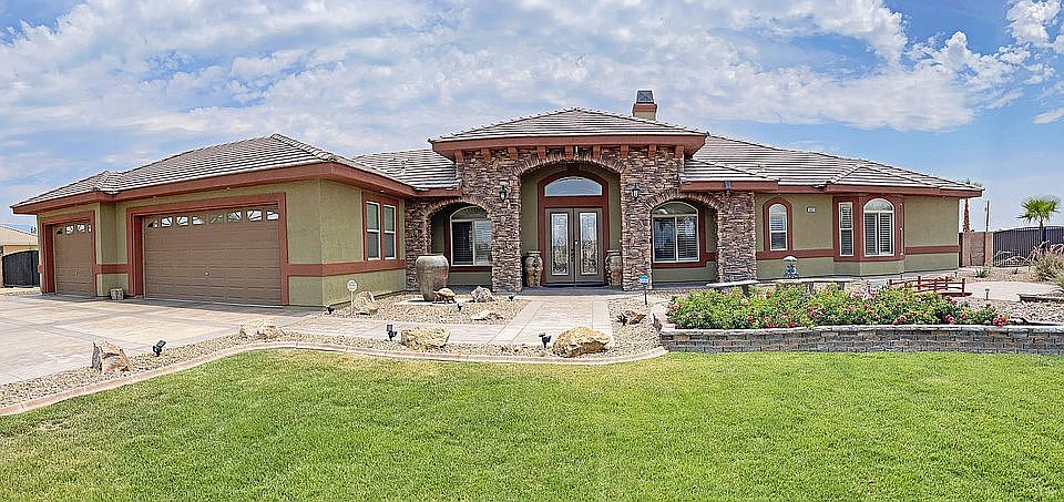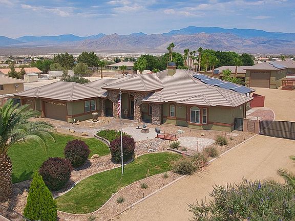 BUYER'S AGENT WELCOMED! CUSTOM BUILT ENTERTAINMENT HOME IS BREATHTAKING! BOASTING A MAIN HOUSE (2,858 SQ FT) AND A RV/CASITA/MEDIA ROOM (2,920 SQ FT) ON 1.10 ACRES OF LAND. Both main house & casita have SOLAR that are fully purchased. This entertainment paradise includes a home theater, professional grade putting green, custom built wood burning pizza oven, shuffleboard, spa, firepit, greenhouse with water, electric and swamp cooler and full RV hookup for friends & family. Professionally landscaped, low maintenance including artificial grass in back yard. The main house offers 4 bedrooms and 3 full baths, a gourmet kitchen with GE Monogram appliances, gas stove, custom hickory cabinets throughout the house, custom tile inlays throughout the house, custom faux wall painting, ceilings vary from 10’ to 14’ throughout the house, Aquasana water filter system with no salt-water softener, 2 gas hot water heaters, 2 air conditioners, Russound intercom and stereo sound system throughout the house including outdoor speakers. Bedroom used for office has custom natural hickory built-in desks. Two spectacular GAS stone fireplaces in living room and master bedroom. Entire 1.10 acres are completely enclosed by block wall with 4 motorized wrought-iron gates for front and rear access. Casita building includes a home theater with seating of 10 with 120” screen, heated & air conditioning, Jamo speakers & surround system with projector (576 sq ft), entertainment/man cave (1,024 sq ft) with custom hickory cabinets, warmer draw, murphy bed, pool table, full bathroom, outdoor surround system, 70” TV, full bar with beverage & wine coolers/ice maker, electric hot water heater and air conditioners. RV Garage/Shop/Gym (1,320 sq ft) with 110V & 220V power (50 amp for RV), full 16 ft work bench/cabinets, home gym area and custom storage cabinets (24”x 8’ x 30’). Items conveying with purchase: washer, dryer, all kitchen appliances, refrigerator, custom window treatments, all home theater furniture & equipment, Olhausen tournament pool table, 70” TV. THIS HOME IS TRULY PAHRUMP’S JEWEL.