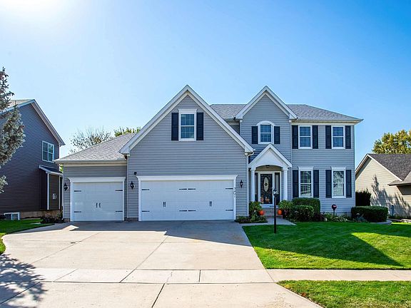 Wonderful 5 bedroom 3.5 bath home in ValleyWynds with many updates! Fabulous floor plan with a kitchen/informal dining/great room combination. Beamed ceiling with French doors and fireplace in the great room. Lovely sunroom that has mini split wall unit that cools and heats with access to the outdoor patio. Finished basement with spacious rec room, bedroom and bath. Updates per seller include new water heater (2019), complete kitchen remodel (2020), complete remodel of both bathrooms upstairs (2020), new roof & skylight (2021), new front door and garage walk-through doors (2021), new windows & shutters on the north side of the home (2021), new furnace & A/C (2022) and new ductless mini split A/C unit in Sunroom (2024). Radon mitigation system & 3 car garage. Pleasant Valley Community School District.
