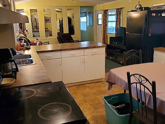 No Lot Rent! This home sits on it's own land! Split floor plan with three bedrooms 2 baths 2 car carport. The very nice eat-in kitchen is spacious with plenty of cabinets, and features a breakfast bar. There is a front screened porch and a back screened in porch with a nice size launder room attached. This home is sitting on 2 lots that are owned and is completely fenced with a double gate to lock.