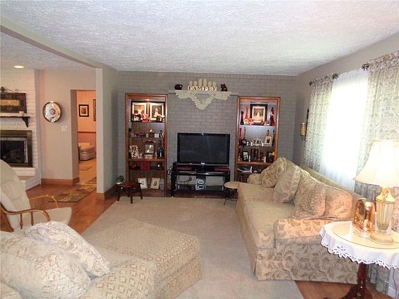 This house feels like home! Spacious flowing floor plan. Kit has ash cabinets w/pullouts and sprawling counter space of Huge island. 2 living areas great for gatherings spill into oversized insul garage w/own pellet stove + kit appliances. Large covered porch takes in serene setting, 3-season rm and patio view the pretty pond. Newer windows, HVAC, roof and WH! Propane tank is even full! Need more bedrooms? Family rm could easily divide in half w/closets, built-in desk already in place.